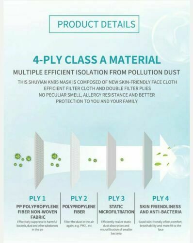 4 LAYERS OF PROTECTION – Each KN95 mask features 4 layers that help minimise the possibility of infection by 95%. It protects against dust, bacteria, germs, smoke, and more.